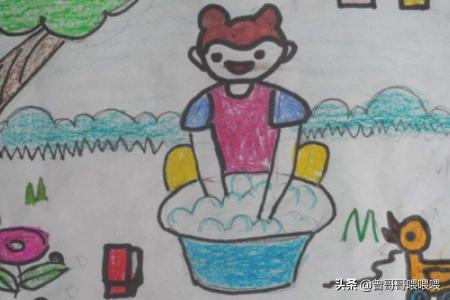 4、五一劳动节,可以画上小朋友帮助父母做家务的场景,例如画上小朋友帮助妈妈洗衣服。