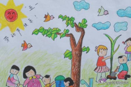 1、全家一起去种树。五一劳动节,要培养孩子热爱劳动的精神,可以画上阳光晴朗的日子里,一家人来到郊外去植树的情景。