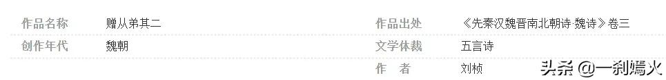 《赠从弟其二》为魏朝词人刘桢所著。