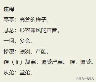 高山上松树挺拔耸立,山谷间狂风瑟瑟呼啸。风声是多么的猛烈,松枝又是多么的刚劲!任它满天冰霜惨惨凄凄,松树的腰杆终年端端正正。难道是松树没有遭到严寒的侵凌吗?不,是松柏天生有着耐寒的本性!