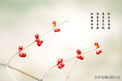 2. 借咏物而寄托相思之情。红豆生长在南方,红色,颗粒圆润饱满。关于红豆还有个传说:在古代有一个女子的丈夫死在了外地,女子知道后伤心欲绝,竟然哭死了。后来在她死去的地方长出了红豆。从此人们把红豆又叫做相思豆,以红豆寄托相思之情。