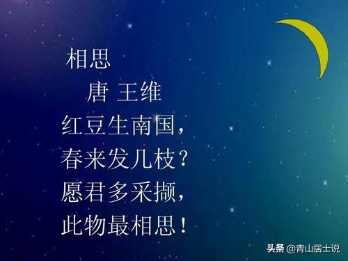 最让我动容的一首情诗是王维的《相思》:红豆生南国,春来发几枝。愿君多采撷,此物最相思。