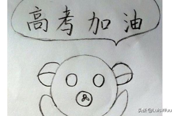 5.在小熊的上方画出一个会话气泡,在气泡里写上“高考加油”的口号。